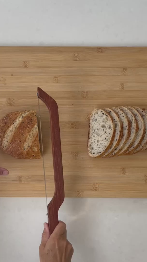 For bread lovers everywhere the Bowmaster® is the perfect kitchen side kick. Hand crafted from beautiful sapele wood, ergonomically balanced with a 0.5mm stainless steel blade, it slices through super soft or super crusty bread with ease.