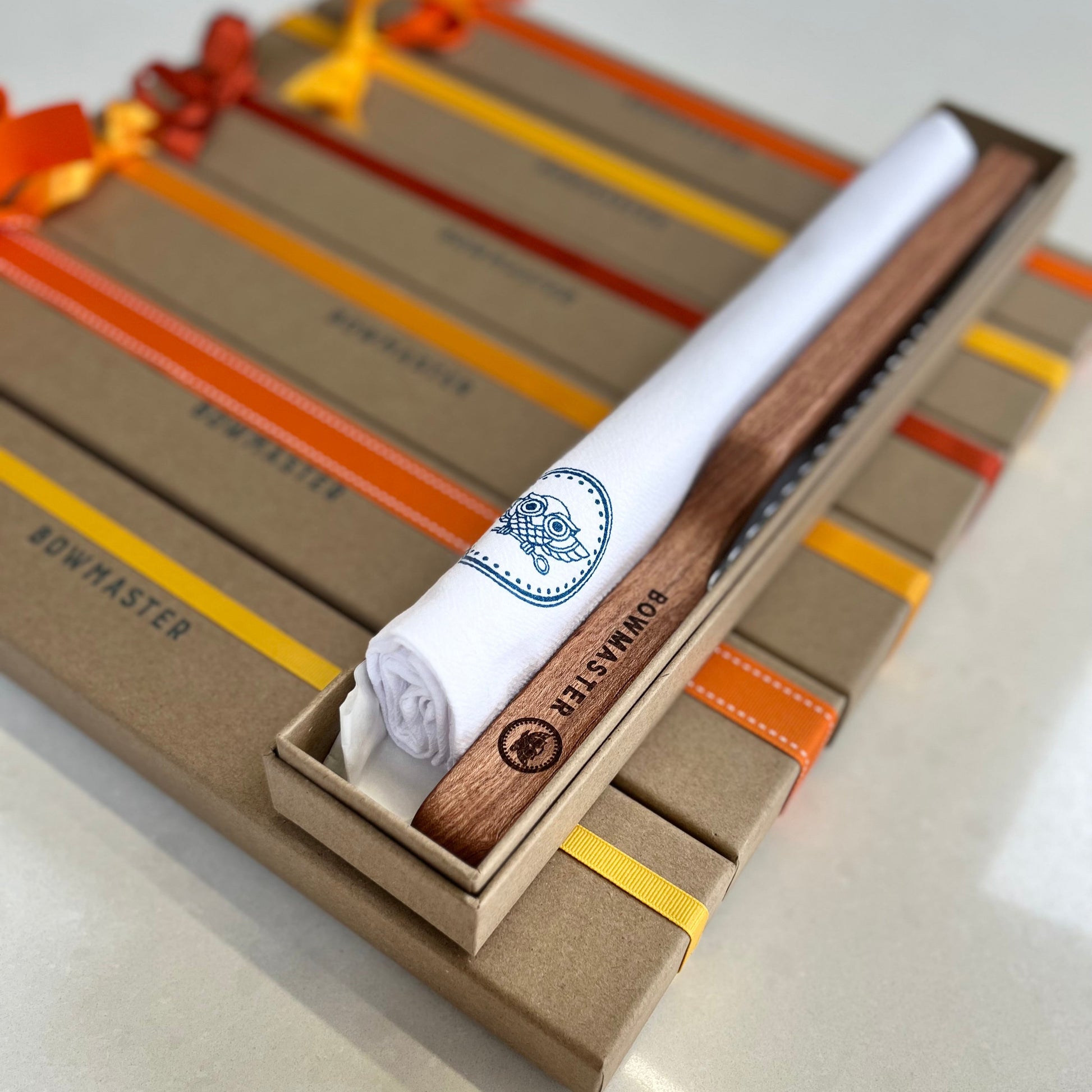 Bowmaster® - Wipe blade clean with a damp cloth and dry. Use mineral oil to maintain the wood’s natural sheen. Do not immerse in water. Not dishwasher safe.