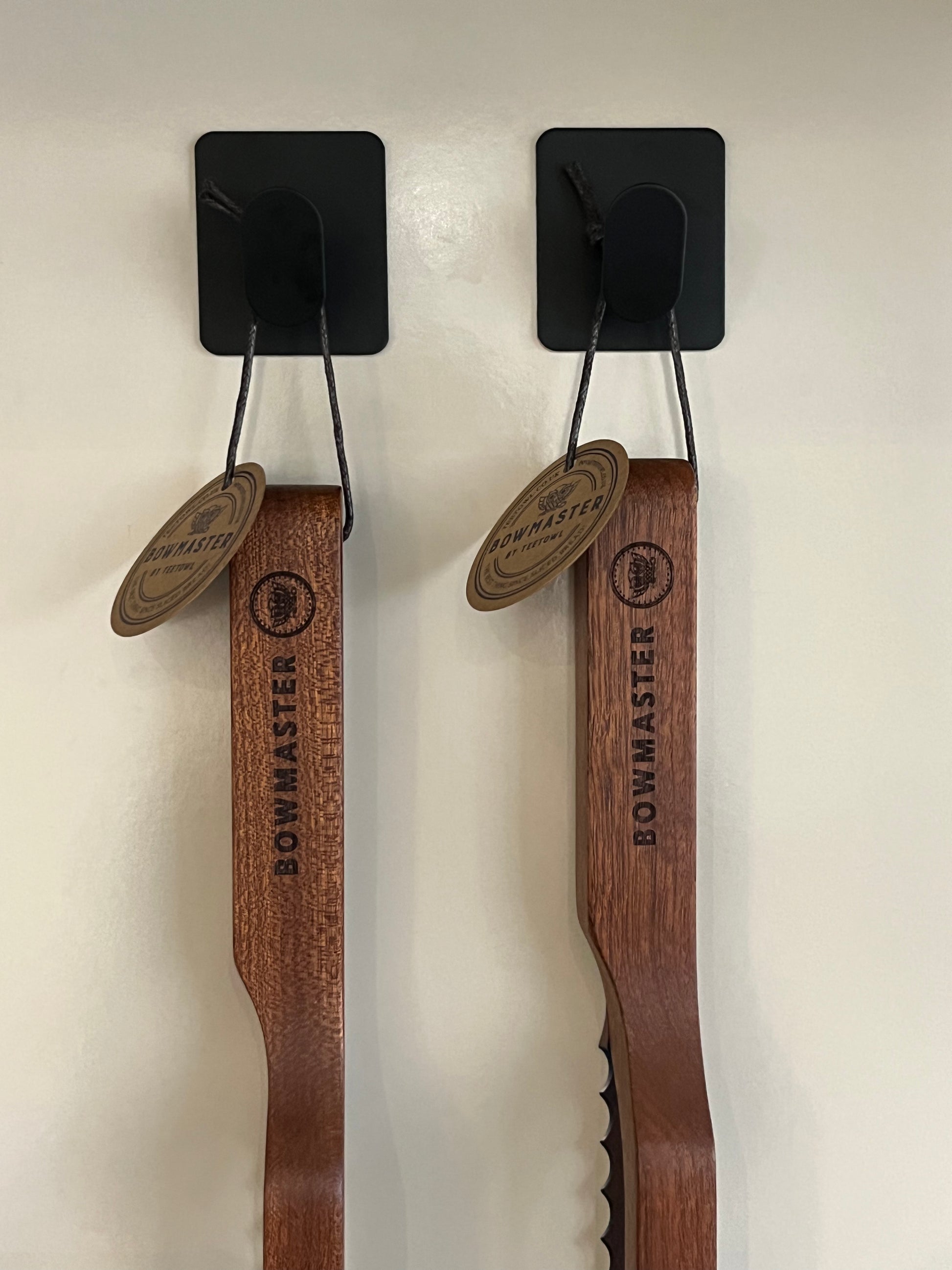 Don't hide your Bowmaster® in a drawer, display it with pride using our handy self adhesive hooks in sleek matt black stainless steel.
